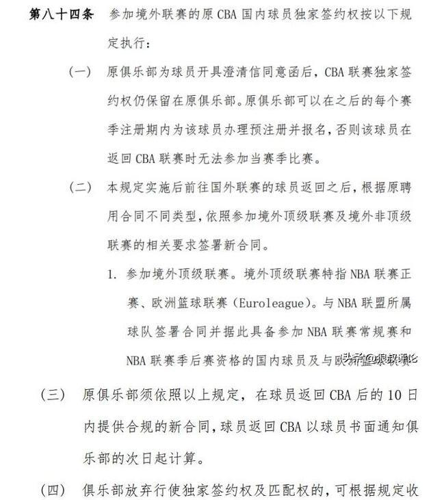 CBA联赛针对海外归国球员的签约权问题出台新规,旨在规范球员流动并避免合同纠纷。根据最新政策,当球员获得母队开具的澄清信后,其CBA联赛的独家签约权仍由原俱乐部保留。若母队放弃行使签约权及匹配权,可依据相关规定收取培养费用。
